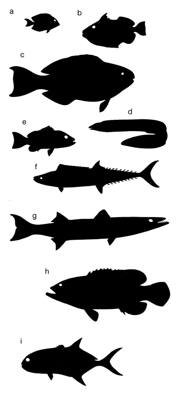 Fig. 4.6 Body silhouettes of several typical reef fish that may temporarily become ciguatoxic.