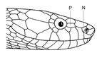 | Is the preocular scale P (directly in front of and in contact with the eye) clearly separated by other scales from the nasal scale N (scale on which the nostril is located)? | yes | Dendroaspis sp. | ||