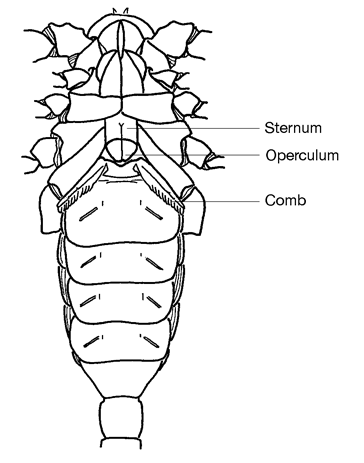 b Ventral view. Note in particular the sternum, which is bounded by the tops of the legs and the operculum.